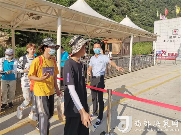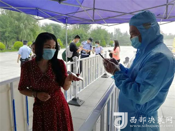 在游客入口處,工作人員正在逐一測(cè)量游客體溫、查驗(yàn)健康碼,沒(méi)有健康碼的,他們要幫助游客注冊(cè)并認(rèn)真登記。經(jīng)檢驗(yàn),一切正常的,恭請(qǐng)入園;體溫不正常的,進(jìn)一步篩查甄別;健康碼是黃色的,勸返;健康碼是紅色的,隔離。