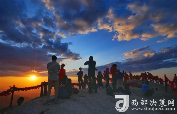 由于華山最高海拔2154.9米,東峰朝陽臺又居高臨險(xiǎn),視野開闊,故為觀日出之最佳位置。旅游季節(jié),每日黎明時(shí)分,朝陽臺上,游人濟(jì)濟(jì),翹首以待這最輝煌、最壯觀的一刻。