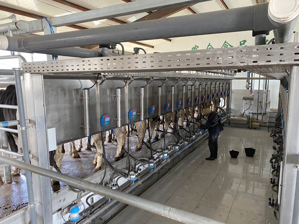 奶牛每天需要擠奶2到3次。牧場的每個牛舍里,都配有1個擠奶廳,奶牛吃完飼料,直接就可以到擠奶廳擠奶。