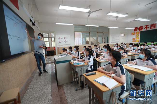 8月10日,在位于武漢的湖北省水果湖一中,老師在給學(xué)生上課。