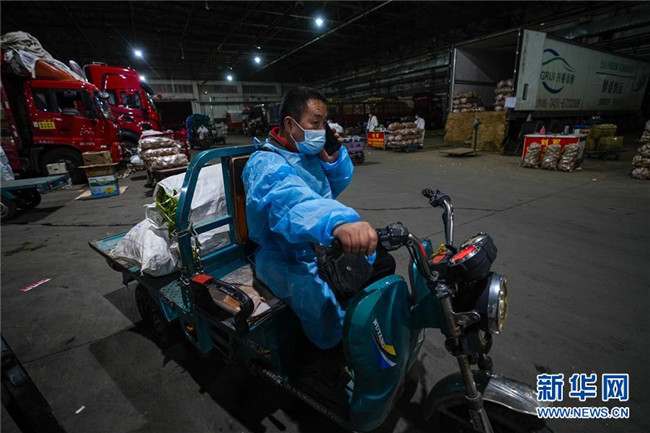 凌晨的新疆九鼎農(nóng)產(chǎn)品批發(fā)交易市場(chǎng)異常忙碌。各式蔬菜在這里匯集,大批菜商搶抓時(shí)間采購,他們采用“螞蟻搬家”的方式要將蔬菜趕在9點(diǎn)鐘之前放在直銷點(diǎn)的貨柜上,方便居民選購。陳金奇就是其中之一。 陳金奇負(fù)責(zé)的烏魯木齊市沙依巴克區(qū)揚(yáng)子江街道青松苑社區(qū)蔬菜直銷點(diǎn)輻射三個(gè)小區(qū)和一家醫(yī)院。“從這次烏魯木齊發(fā)生疫情以來,我們一直沒有關(guān)門,開足馬力滿足周邊居民的生活需求。”陳金奇說。 凌晨四點(diǎn)是陳金奇一天忙碌的開始。這一刻,他開著面包車驅(qū)車20分鐘前往烏魯木齊最大的一級(jí)農(nóng)副產(chǎn)品批發(fā)交易市場(chǎng)——新疆九鼎農(nóng)產(chǎn)品批發(fā)交易市場(chǎng)采購。 經(jīng)過嚴(yán)格的防疫處理后,陳金奇進(jìn)入市場(chǎng)。為提高效率,他放下面包車換駕電動(dòng)三輪車穿行在這座龐大的市場(chǎng)里。“黃瓜多少錢?西紅柿多少錢?小白菜多少錢……”在新鮮、價(jià)格和速度中,陳金奇總能找到最好的結(jié)合點(diǎn)。 經(jīng)歷了兩個(gè)半小時(shí),總重超過一噸的新鮮蔬菜分四批采購?fù)瓿裳b入面包車?yán)铩?ldquo;現(xiàn)在市場(chǎng)里各類蔬菜是比較豐富的,山東的生姜、五家渠的芹菜、河南的蒜苔等都能順利買到。”陳金奇介紹,現(xiàn)在最重要的是快速將這些鮮菜送到居民手中。 忙碌了近三個(gè)小時(shí),這座城市的天際線慢慢顯露出來。陳金奇在回程的汽車上,黎明時(shí)分的金色陽光映照著他黝黑的臉龐。“做好自己的事情就足夠了,我就是要盡全力讓居民吃上新鮮蔬菜。” 一年只有年三十和初一才能休息的陳金奇知道,現(xiàn)在這座城市比任何時(shí)候都需要他。