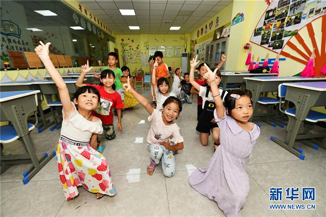 8月13日,貴州省思南縣雙塘街道麗景社區(qū)易地扶貧搬遷安置點(diǎn)的孩子們?cè)趯W(xué)跳舞。 新華社記者 楊文斌 攝