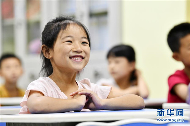 8月13日,貴州省思南縣雙塘街道麗景社區(qū)易地扶貧搬遷安置點(diǎn)的孩子們?cè)谏弦魳?lè)課。新華社記者 楊文斌 攝