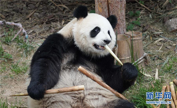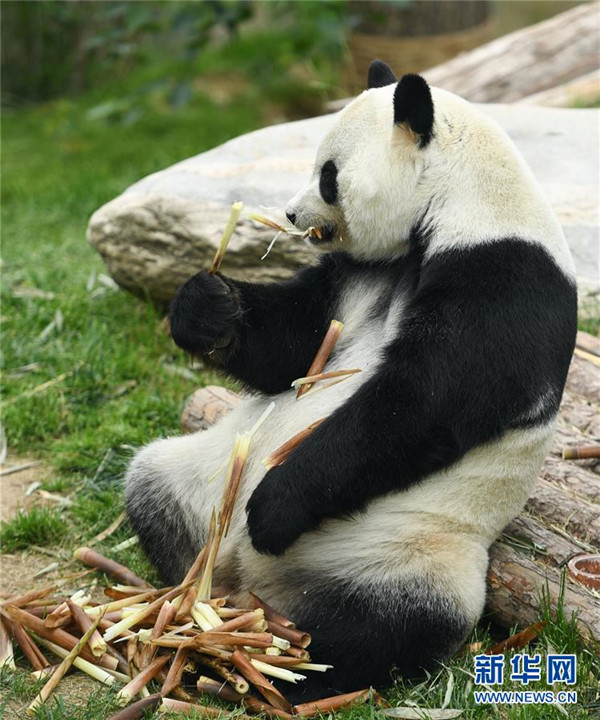 8月16日,大熊貓“雙欣”在西寧熊貓館內(nèi)吃竹子。青海省西寧熊貓館的四只大熊貓已經(jīng)在西寧生活了一年多,在工作人員的悉心照顧下,已經(jīng)適應(yīng)了青藏高原的氣候,身體各項(xiàng)指標(biāo)正常。新華社記者薛玉斌攝