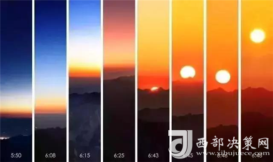 瞬間,一輪火球噴薄而出,繼而光芒四射,氣象萬千,整個(gè)世界大放光明,游人身心為之一振。