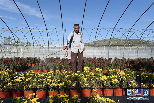 大棚蔬菜、花卉育苗、制種繁育、牛羊養(yǎng)殖……18個現(xiàn)代化農(nóng)業(yè)基地如雨后春筍般出現(xiàn)。整個魯家溝成了扶貧產(chǎn)業(yè)園,15分鐘務工圈初具雛形,昔日靠天吃飯的莊稼漢變成了旱澇保收的“上班族”。每天,陳瑞福徜徉在花叢中除草、澆水、施肥。他說,這比種地“下苦”美多了。