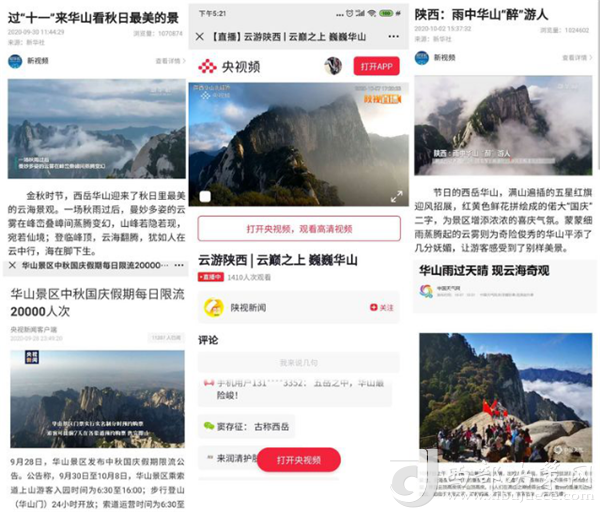 節(jié)前與央視頻手機(jī)客戶端及陜視新聞手機(jī)客戶端提前對接并測試信號,確保黃金周期間全天24小時不間斷慢直播順利進(jìn)行,同時與央視、新華社、人民網(wǎng)、陜西日報、陜西電視臺、渭南日報、渭南電視臺及省內(nèi)主流網(wǎng)絡(luò)媒體聯(lián)系對接,確保黃金周期間各項(xiàng)工作有序推進(jìn)。
