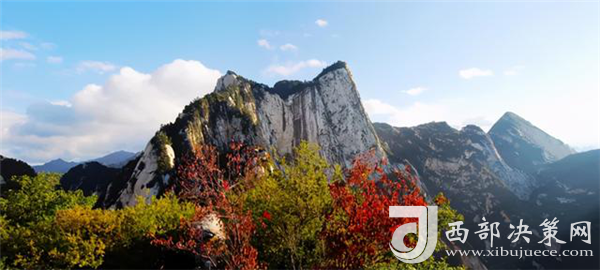 秋天的華山很是動人。天高云淡,漫山紅葉分外妖嬈,彩林賞心悅目,一步一景,滿目所見皆是驚喜。若是乘索道而上,層林金黃與郁郁蔥蔥的華山松、灰白的花崗巖山體相互迎映襯,形成了秋天多彩的西岳風光。