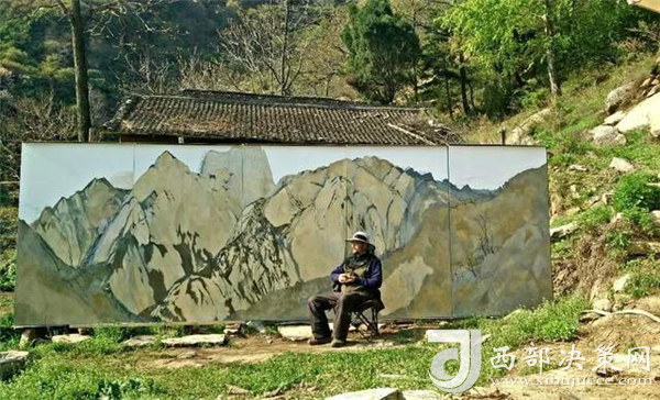 值得提起的是,田學(xué)森在華山十年,每幅畫都是在現(xiàn)場揮筆完成。美術(shù)界有些常用的省時省力的畫法,田學(xué)森都不喜歡去做。他喜歡與畫框共同經(jīng)歷自然環(huán)境的時間和空間,為千古華山寫照,表達(dá)對華山的感悟和敬意。他說,“華山是頂天立地的脊梁,我們每個人走的路,都是尋脈的過程。”