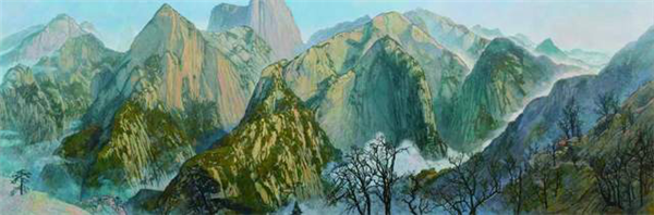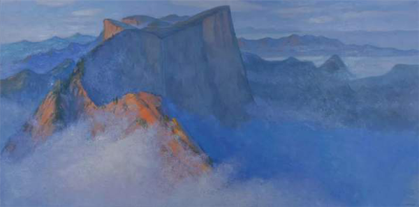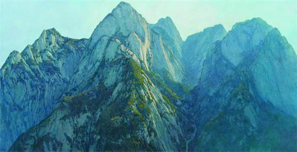 田學(xué)森離開繁華的大都市,懷著一顆敬畏自然,與天地精神交流的向往,感受華山的厚重,殉道般的投入創(chuàng)作。甘于寂寞,獨處華山十年,借鑒傳統(tǒng)山水畫意境,用油畫材料技法嘗試為千古華岳寫照。