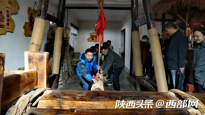 “手要穩(wěn)啊、都攢勁啊、多出油啊、奔小康啊……”只要游客喜歡,在石泉縣中壩作坊小鎮(zhèn)當(dāng)賣油郎的石榮成總會邊喊著鏗鏘有力的號子,邊通過操作木榨機(jī)撞桿向游客和消費(fèi)者還原展示當(dāng)?shù)刈钤嫉牟俗颜ビ图妓嚕?ldquo;以讓大家對傳統(tǒng)文化有更多了解”。