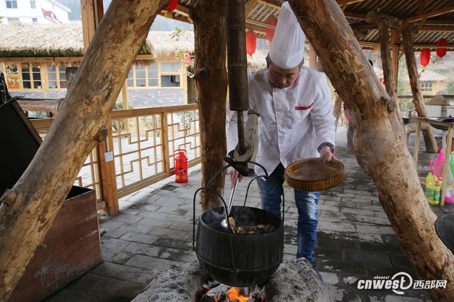 70后劉東以前在外地做廚師,現(xiàn)在被請到作坊小鎮(zhèn),劉東拿手的是當(dāng)?shù)靥厣蹂?,吊鍋燉臘豬蹄蓮菜是當(dāng)?shù)氐囊坏烂朗场?/span>