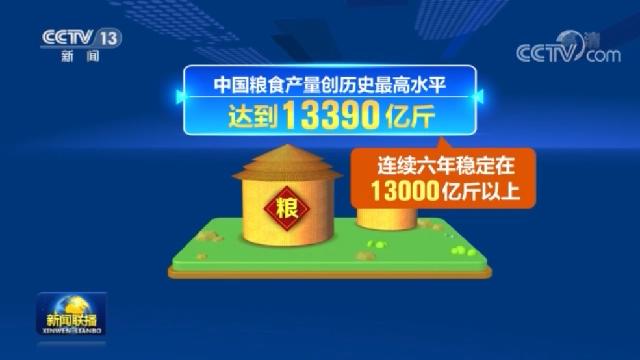 2020年,面對(duì)新冠肺炎疫情和不利天氣影響,中國(guó)糧食產(chǎn)量創(chuàng)歷史最高水平,達(dá)到13390億斤,連續(xù)六年穩(wěn)定在13000億斤以上。