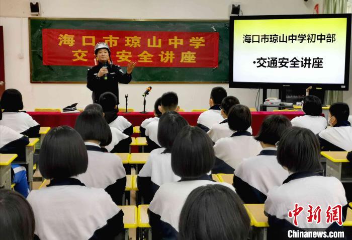 海口公安交警進(jìn)校園開展“交通安全第一課”活動(dòng)。海口交警供圖
