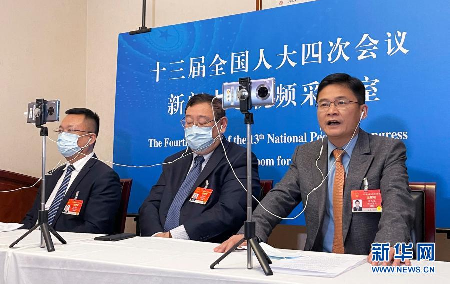 3月6日,全國人大代表在湖南代表團(tuán)駐地接受視頻采訪。新華社記者 熊爭(zhēng)艷 攝