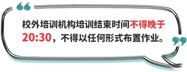 四、防止學(xué)業(yè)過重?cái)D占睡眠時(shí)間。中小學(xué)校要提升課堂教學(xué)實(shí)效,加強(qiáng)作業(yè)統(tǒng)籌管理,嚴(yán)格按照有關(guān)規(guī)定要求,合理調(diào)控學(xué)生書面作業(yè)總量,指導(dǎo)學(xué)生充分利用自習(xí)課或課后服務(wù)時(shí)間,使小學(xué)生在校內(nèi)基本完成書面作業(yè)、中學(xué)生在校內(nèi)完成大部分書面作業(yè),避免學(xué)生回家后作業(yè)時(shí)間過長,擠占正常睡眠時(shí)間。校外培訓(xùn)機(jī)構(gòu)培訓(xùn)結(jié)束時(shí)間不得晚于20:30,不得以課前預(yù)習(xí)、課后鞏固、作業(yè)練習(xí)、微信群打卡等任何形式布置作業(yè)。