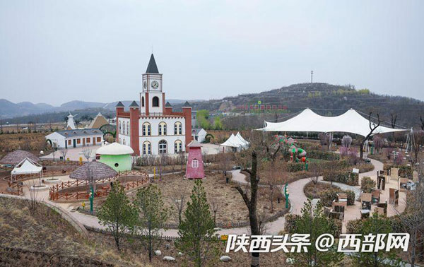 站在南溝村生態(tài)園最高處的觀景臺俯瞰景區(qū),紅色小樓錯落有序、旁邊水庫綠水盈盈、遠處山峰層層疊疊、成片的蘋果園劃出整齊的曲線,五顏六色的游樂設施裝點著黃土高原,讓人驚嘆山溝溝里竟然還有這樣養(yǎng)眼的好去處。