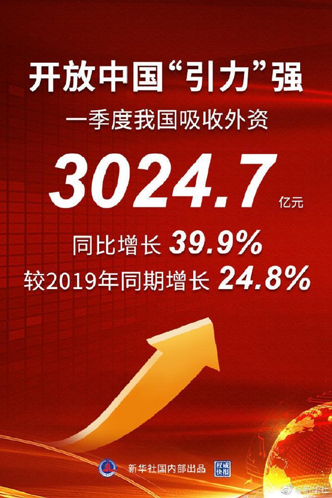 開(kāi)局季,我國(guó)吸收外資迎來(lái)亮眼成績(jī)單:一季度新設(shè)外資企業(yè)數(shù)和實(shí)際使用外資金額同比增速分別接近50%和40%,漲幅明顯。漲勢(shì)背后原因何在?勢(shì)頭能否持續(xù)?