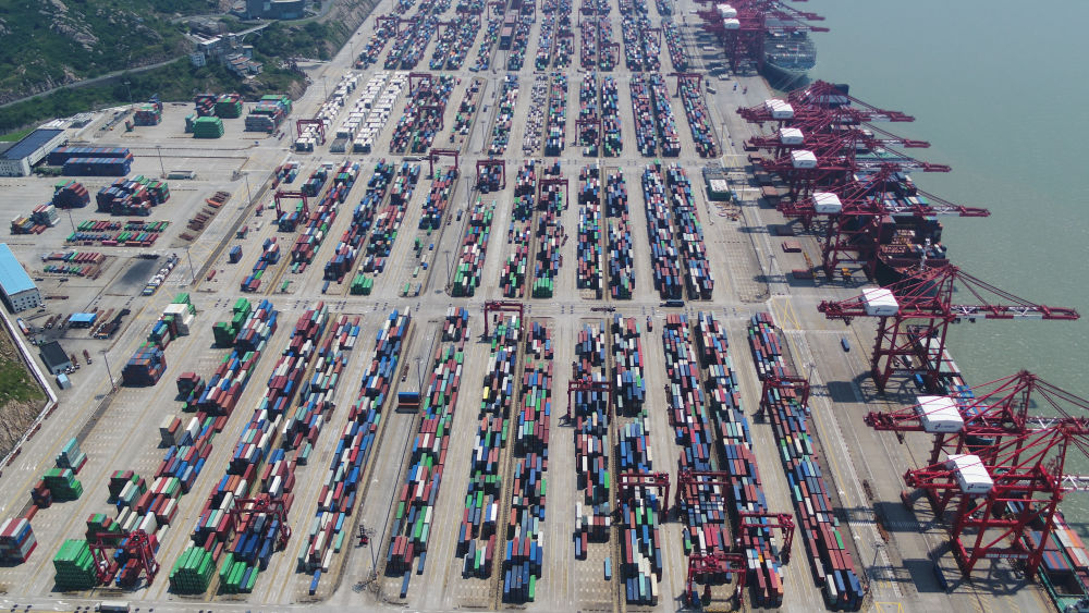上海洋山港集裝箱碼頭(無(wú)人機(jī)照片)。新華社記者 丁汀 攝