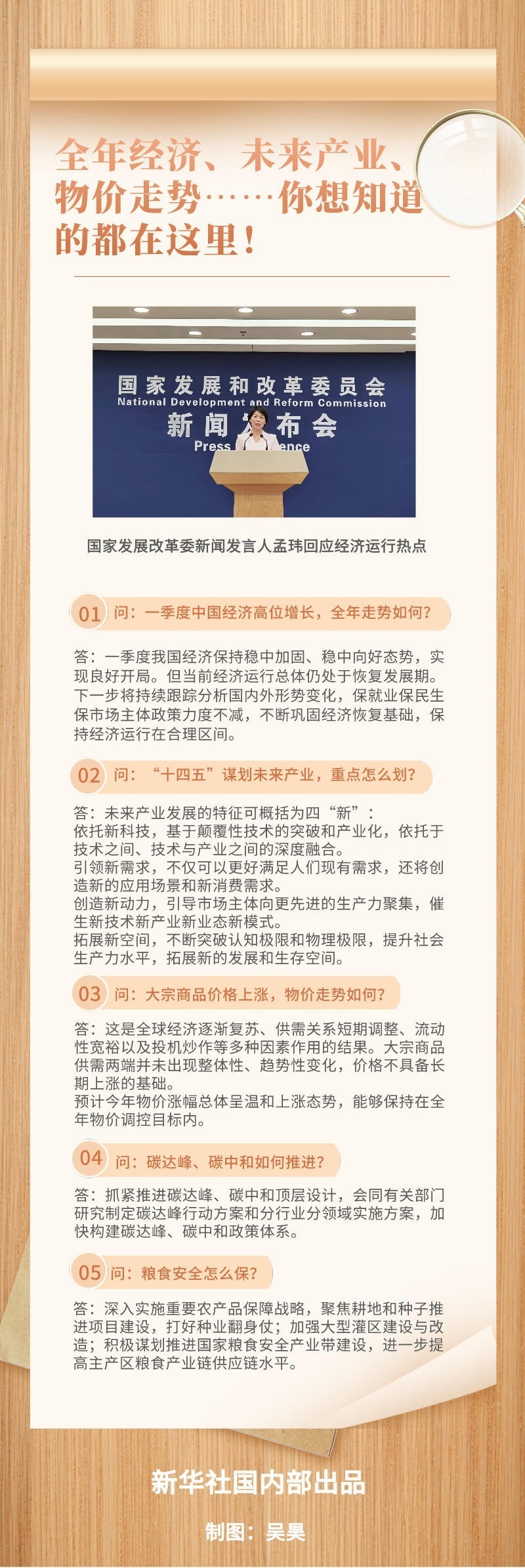 一季度中國經(jīng)濟(jì)高位增長,全年走勢(shì)如何?“十四五”謀劃未來產(chǎn)業(yè),重點(diǎn)怎么劃?大宗商品價(jià)格上漲,物價(jià)可控嗎?國家發(fā)展改革委新聞發(fā)言人孟瑋在19日舉行的新聞發(fā)布會(huì)上就熱點(diǎn)問題作出回應(yīng)。