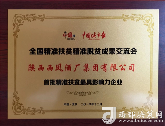 西鳳集團公司榮獲全國“首批精準扶貧最具影響力企業(yè)”榮譽稱號