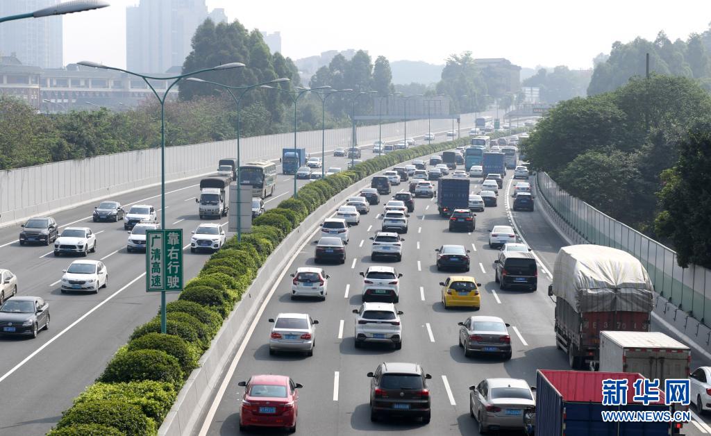 5月1日,廣州環(huán)城高速公路上車行緩慢。當日,廣州周邊高速公路迎來出行高峰。文化和旅游部5月5日晚間公布2021年“五一”假期旅游市場數據。統(tǒng)計顯示,5月1日至5日,全國國內旅游出游2.3億人次,同比增長119.7%,按可比口徑恢復至疫前同期的103.2%。新華社記者 盧漢欣 攝