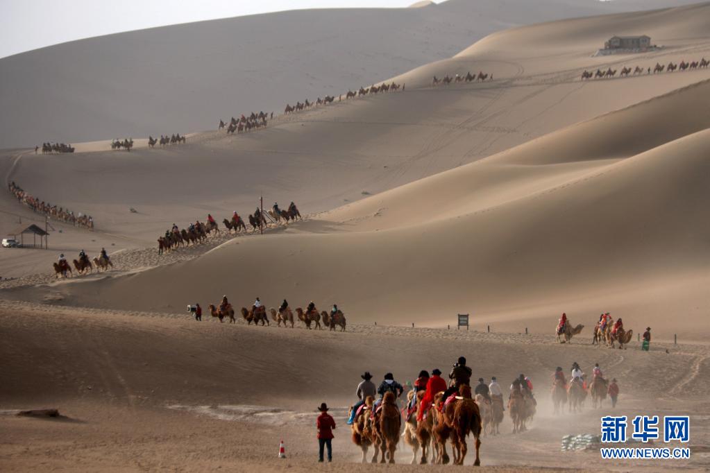 5月1日,游客在甘肅省敦煌市鳴沙山月牙泉景區(qū)游覽。文化和旅游部5月5日晚間公布2021年“五一”假期旅游市場數據。統(tǒng)計顯示,5月1日至5日,全國國內旅游出游2.3億人次,同比增長119.7%,按可比口徑恢復至疫前同期的103.2%。新華社發(fā)(張曉亮 攝)