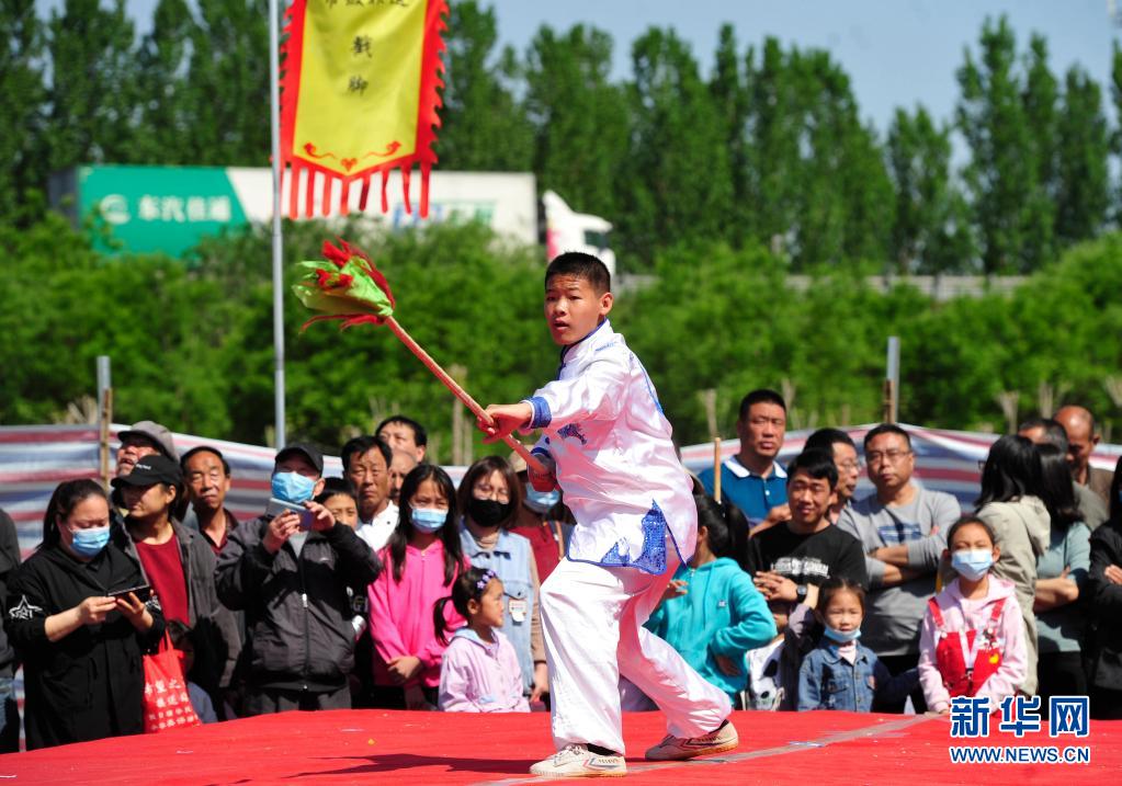 5月2日,習武者在河北滄州肅寧縣西泊莊牡丹文化園表演五虎斷門槍。文化和旅游部5月5日晚間公布2021年“五一”假期旅游市場數據。統(tǒng)計顯示,5月1日至5日,全國國內旅游出游2.3億人次,同比增長119.7%,按可比口徑恢復至疫前同期的103.2%。新華社記者 朱旭東 攝