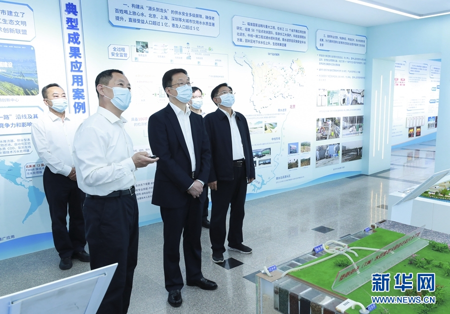 5月18日,中共中央政治局常委、國務(wù)院副總理韓正在中國環(huán)境科學(xué)研究院主持召開座談會。這是會前,韓正聽取水體污染控制與治理科技重大專項(xiàng)成果展示匯報(bào)。新華社記者 龐興雷 攝