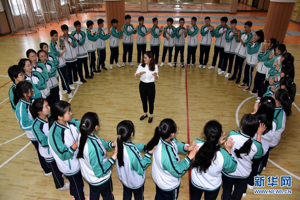 5月23日,青島通濟實驗學校高三學生在進行“激情節(jié)拍”游戲。新華社記者 李紫恒 攝