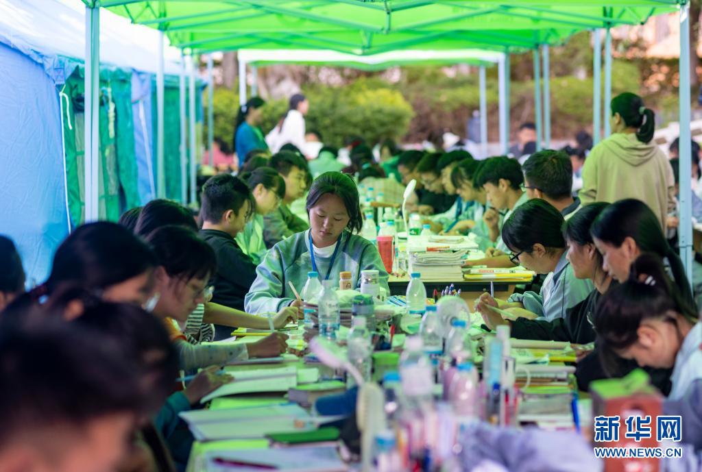 5月24日,漾濞一中高三年級學(xué)生在帳篷下學(xué)習(xí)。新華社記者陳欣波攝