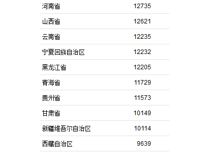 31省份2021年上半年人均可支配收入。來(lái)自國(guó)家統(tǒng)計(jì)局。
