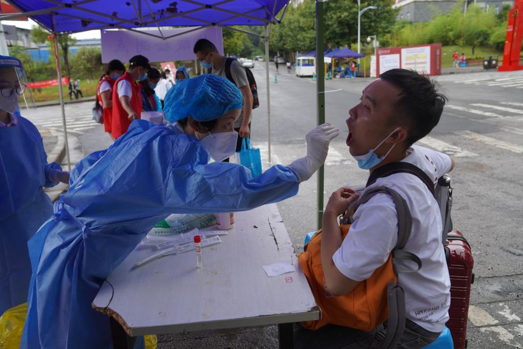 8月24日,貴州醫(yī)科大學(xué)新生報(bào)到注冊時(shí)接受核酸檢測。新華社發(fā)(李菡逸 攝)