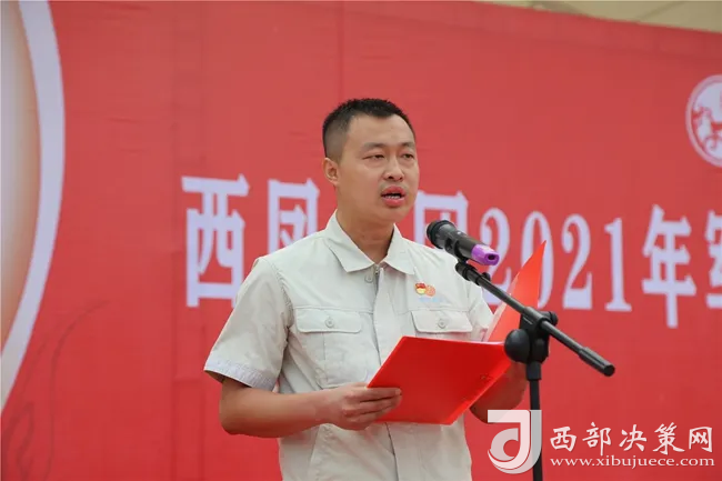 西鳳集團(tuán)公司工會主席、勞動競賽委員會主任陳軍紅宣讀《關(guān)于對2021年軍訓(xùn)優(yōu)秀隊員及優(yōu)秀教官進(jìn)行表彰獎勵的決定》及《關(guān)于對第五屆基酒生產(chǎn)系統(tǒng)技能大賽獲獎集體和個人進(jìn)行表彰獎勵的決定》