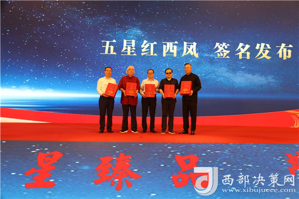 國務(wù)院首批特殊津貼專家、西北大學(xué)中國文明史研究院院長(zhǎng)孫皓暉,陜西師范大學(xué)歷史文化學(xué)院教授、博士生導(dǎo)師于賡哲,陜西省工信廳原副巡視員、陜西省輕工業(yè)協(xié)會(huì)原會(huì)長(zhǎng)張鑒,西鳳集團(tuán)公司黨委書記、董事長(zhǎng),股份公司董事長(zhǎng)張正,陜西禧福祥商貿(mào)有限公司董事長(zhǎng)王延安共同上臺(tái)為五星紅西鳳簽名,宣告五星紅西鳳正式上市發(fā)布,西鳳酒的高端化之旅再上新臺(tái)階。