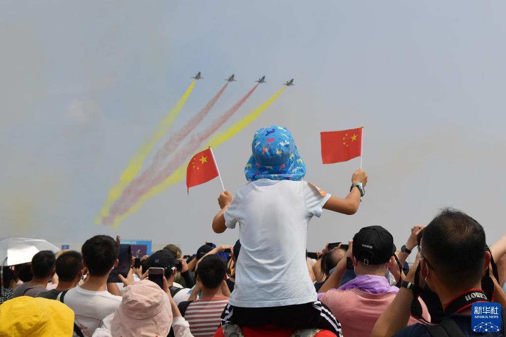 10月1日,中國空軍八一飛行表演隊在第十三屆中國國際航空航天博覽會上進行飛行表演。新華社發(fā)(余紅春 攝)