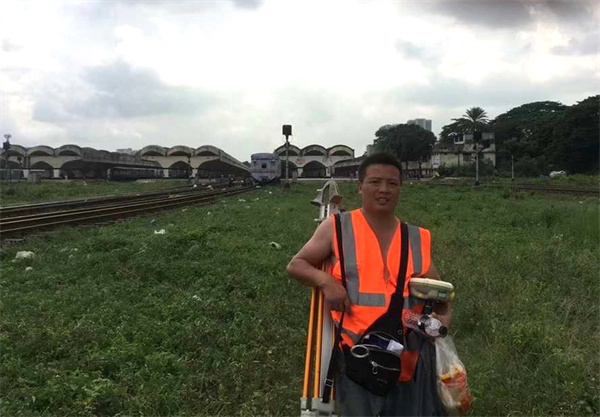 在中鐵一局三公司孟加拉帕德瑪大橋鐵路連接線項(xiàng)目,唐飛帶隊(duì)進(jìn)行前期控制網(wǎng)復(fù)測(cè),因前期各項(xiàng)準(zhǔn)備工作還未到位,來(lái)到這個(gè)陌生的國(guó)度,唐飛面臨的是一個(gè)語(yǔ)言不通、無(wú)后勤保障、自然條件惡劣的環(huán)境。沒(méi)有翻譯,唐飛就用翻譯軟件翻譯生僻的英語(yǔ)和設(shè)計(jì)、監(jiān)理溝通;沒(méi)有合適的工人,唐飛和隊(duì)員們就自己挖坑、抬樁子;沒(méi)有食堂,他們連續(xù)吃了一個(gè)月的方便面午餐。孟加拉位于熱帶地區(qū),雨水多且來(lái)勢(shì)迅猛,雨來(lái)時(shí),唐飛他們就在雨中堅(jiān)持放線,雨太大實(shí)在無(wú)法觀測(cè)時(shí),他們就站在雨中打著傘,用塑料袋保護(hù)著儀器,直到雨停后繼續(xù)觀測(cè)。