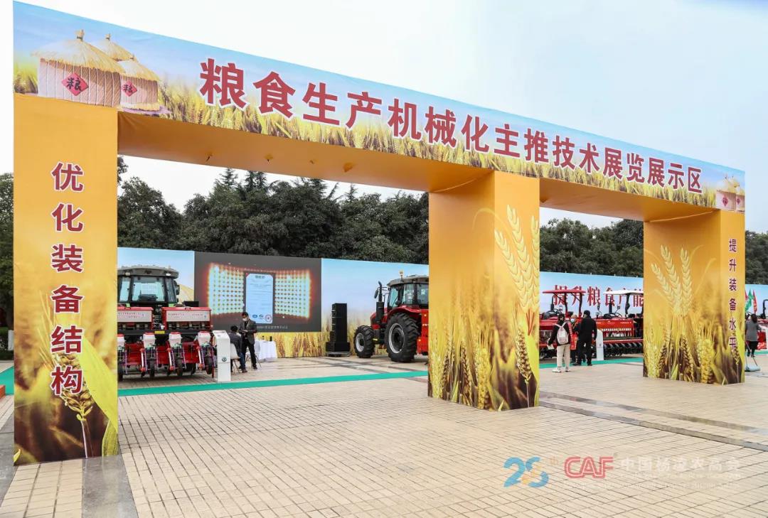 來(lái)到糧食生產(chǎn)機(jī)械化主推技術(shù)展示區(qū),一排高大的拖拉機(jī)配套播種機(jī)格外醒目。
