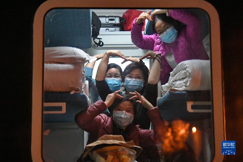 10月29日,滯留游客離開額濟(jì)納旗時(shí),在列車車廂里擺出一個(gè)個(gè)“愛心”。新華社發(fā)(王磊 攝)