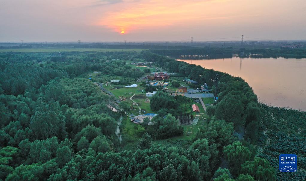 這是遼寧省鐵嶺蓮花湖國家濕地公園(8月23日攝,無人機照片)?!⌒氯A社記者 姚劍鋒 攝