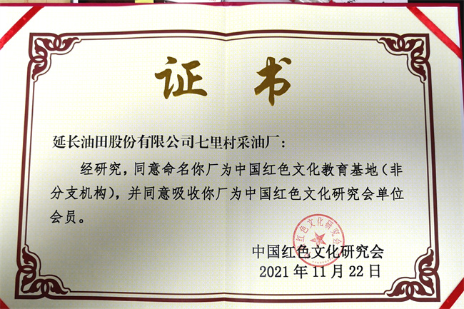 西部決策網(wǎng)訊(記者張靜 通訊員 劉亞萍)日前,延長(zhǎng)石油七里村采油廠被中國(guó)紅色文化研究會(huì)命名為中國(guó)紅色文化教育基地,并授牌和頒發(fā)了證書(shū)。