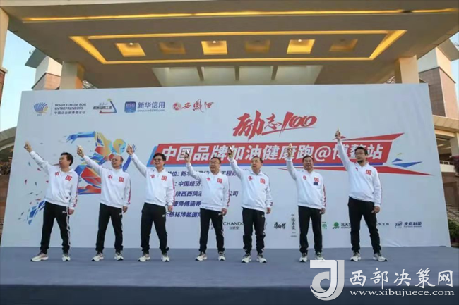 張正等5位嘉賓共同為西鳳酒協(xié)辦的“勵(lì)志100”中國(guó)品牌加油健康跑鳴響發(fā)令槍