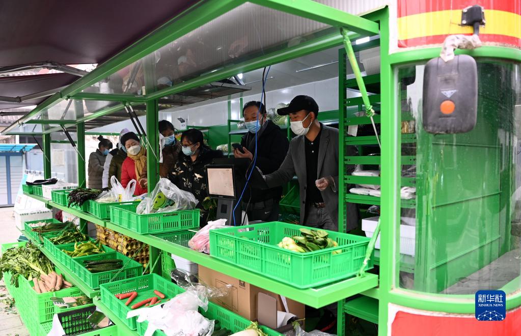 12月23日,西安市新城區(qū)一小區(qū)住戶在小區(qū)超市買菜。新華社記者 劉瀟 攝