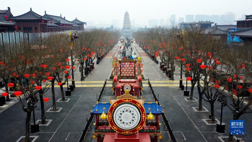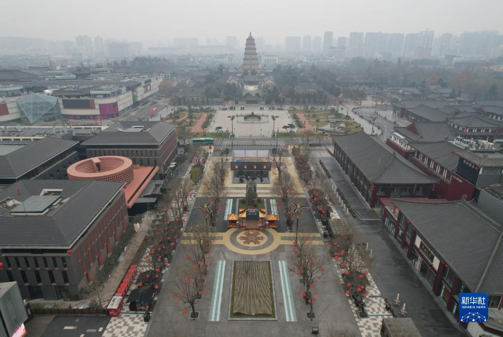 12月23日拍攝的西安大唐不夜城步行街(無人機照片)。新華社記者 邵瑞 攝