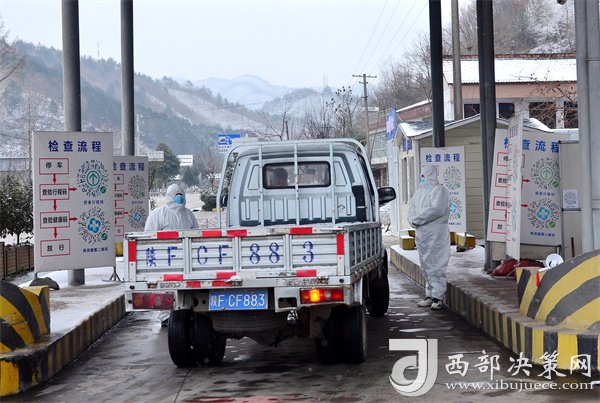 12月26日,防疫人員正在寧強(qiáng)縣城南門高速路口執(zhí)勤