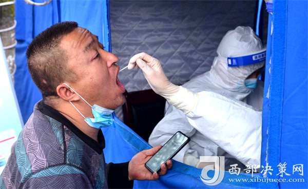 12月26日,醫(yī)護(hù)人員正在寧強(qiáng)縣城南門檢測(cè)點(diǎn)給來寧人員核酸采樣