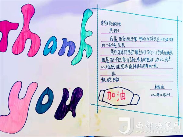 三九嚴(yán)冬,雪花紛飛,寒風(fēng)刺骨。12月24日,一大早,我和隊員們早早到指定地點集合,等待分配任務(wù)??吹阶o(hù)理姐妹們個個兒都精神飽滿、整裝待發(fā),我的心情是又緊張又激動。當(dāng)我們到達(dá)任務(wù)采集地點時,社區(qū)工作人員和志愿者同志為我們搭建了一個簡易帳篷。帳篷四翼隨風(fēng)飄揚(yáng),凜冽的寒風(fēng)襲進(jìn)帳篷,如同置身風(fēng)口一樣。一切準(zhǔn)備就緒,換上防護(hù)用品,立即開展工作。室外溫度達(dá)零下五度,我們認(rèn)真地為每位居民采集核酸。采集完核酸后,做到一人一消,隊員的手都凍得通紅麻木,已經(jīng)感覺不到疼痛,面屏上都已經(jīng)霧氣籠罩,但是,隊員們沒有一個人喊累、沒有一個人退縮,更沒有一個人喊停。這時,耳畔傳來一聲,“孩子,辛苦了,這是我給你們送的熱水,” “我家有熱寶,給你們?nèi)∪∨?rdquo;“姐姐,謝謝你們,”說著,一個小女孩走過來,送來兩張自己做的小賀卡,上面寫的都是感謝的話語。