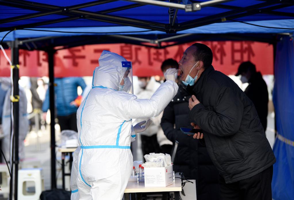 12月17日,市民在西安市碑林區(qū)柏樹林街道三學(xué)街社區(qū)核酸檢測(cè)點(diǎn)進(jìn)行核酸檢測(cè)。新華社記者 劉瀟 攝