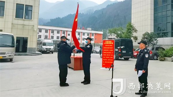 鎮(zhèn)巴縣公安局黨員突擊隊臨時黨支部書記黃小勇接旗
