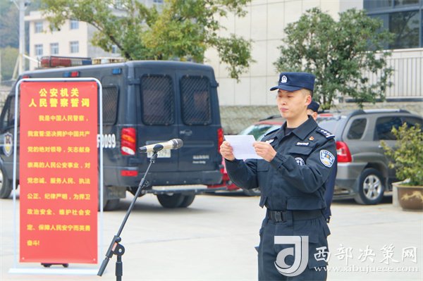 副縣長、公安局黨委書記、局長裴新民向鎮(zhèn)巴縣公安局黨員突擊隊授旗